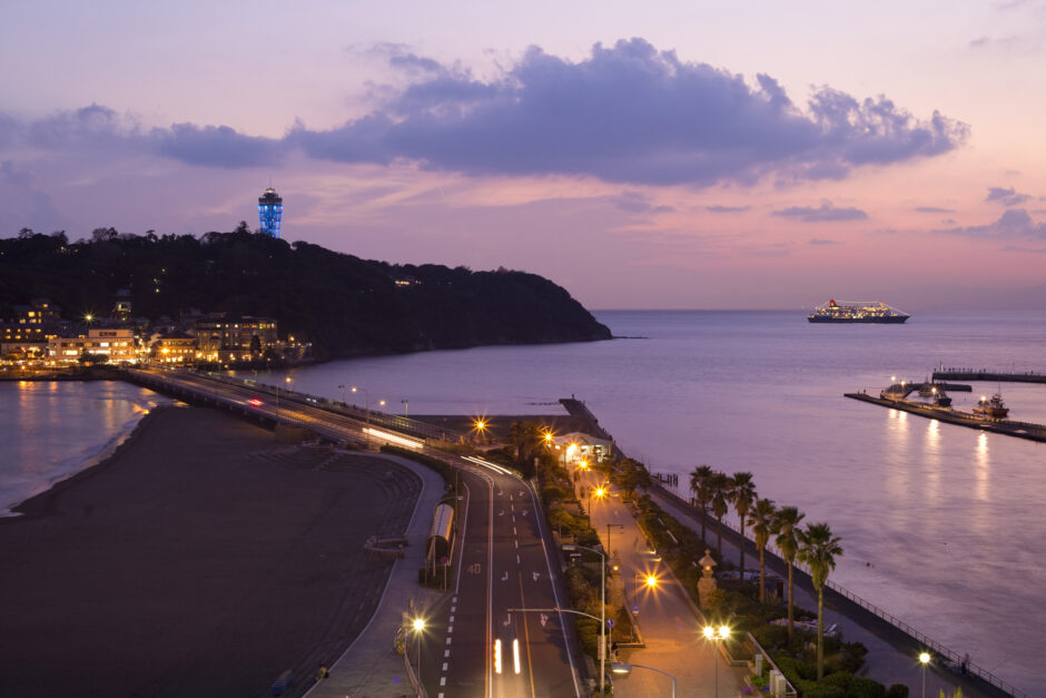テンダーボートが到着する湘南港は、島の東側に位置しています。そこから、江の島弁財天仲見世通りまでは徒歩10分ほど。また、島を渡る江の島大橋を歩けば、対岸の片瀬江ノ島駅(小田急)や江ノ島駅(江ノ電)まで20分程度です。江ノ電に乗れば、鎌倉の大仏や長谷寺といった歴史的名所へも30分圏内。島内観光だけでなく、古都・鎌倉への遠足の起点としても非常に魅力的な立地です。