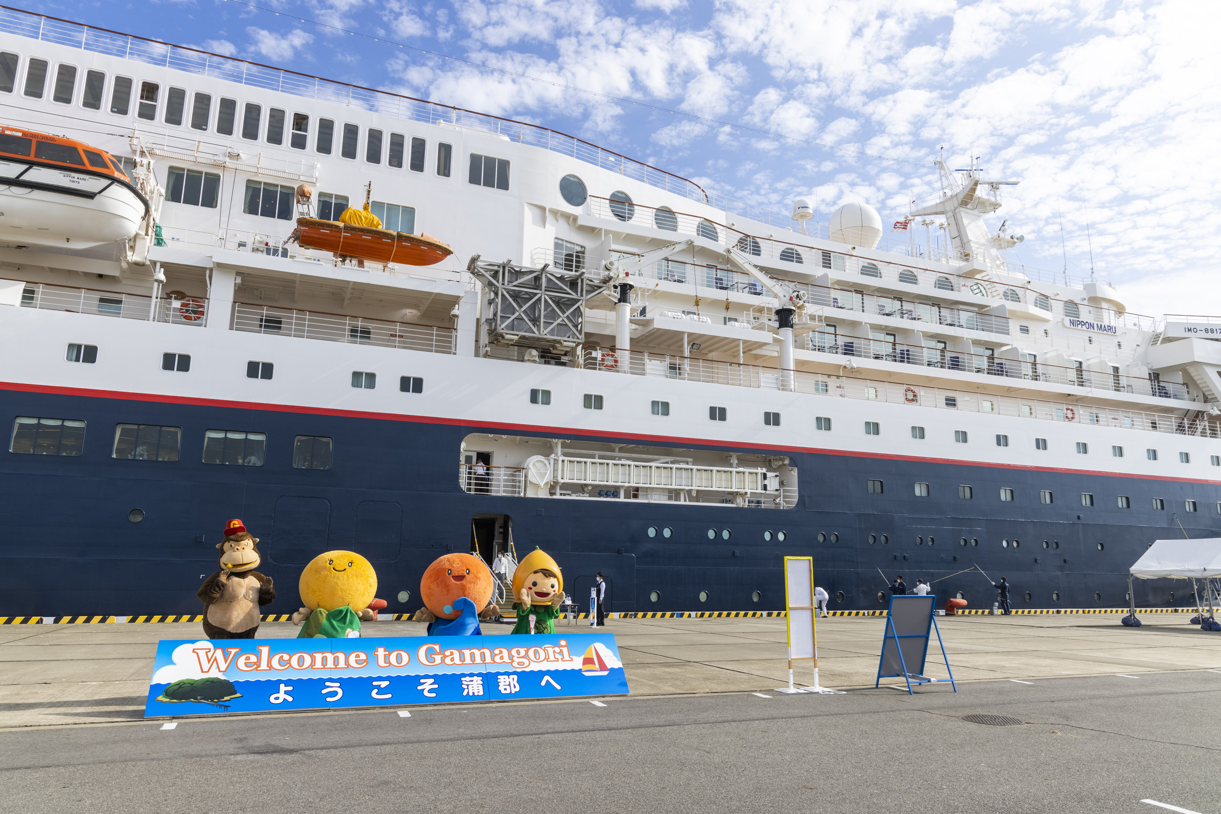 蒲郡港への入港は、波穏やかな三河湾を滑るように進む心地よいものです。船上からは、国の天然記念物に指定されている「竹島」が、海にぽっかりと浮かぶ緑の宝石のように見えてきます。着岸する蒲郡ふ頭は非常に広々としており、入港時には地元の皆さんが伝統の三河手筒花火や太鼓で熱烈に歓迎してくれることも多く、地方港ならではの温かいおもてなしを肌で感じることができます。