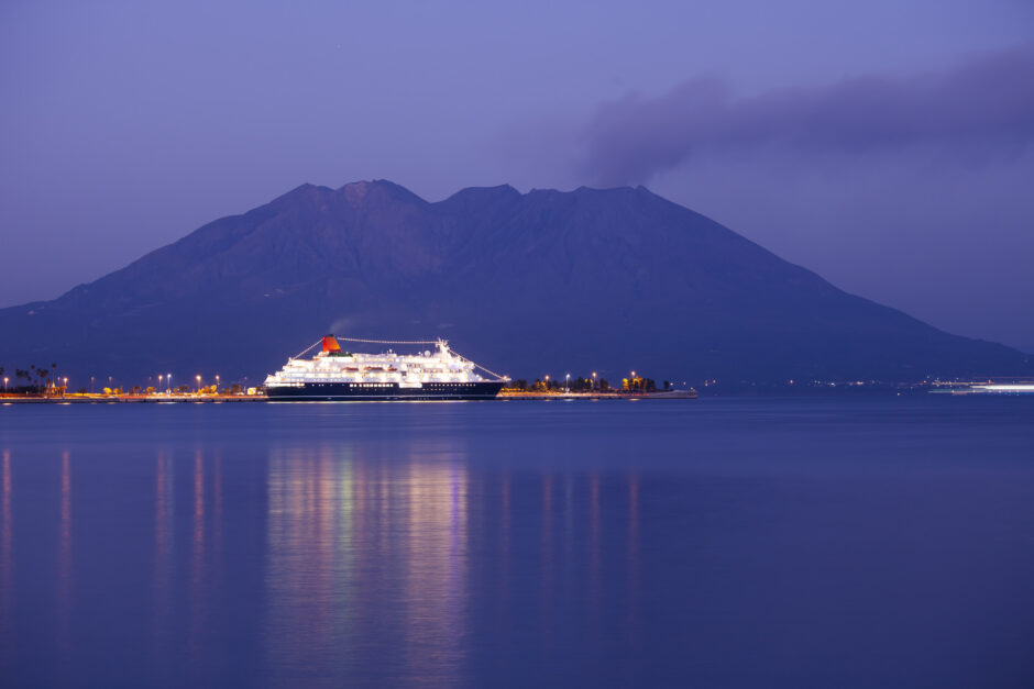 鹿児島港へのアプローチは、朝霧に包まれた錦江湾を進み、刻一刻と表情を変える桜島の荒々しい山肌が目前に迫る、世界でも類を見ないほど圧倒的なビジュアルから始まります。船のデッキからは、街を縦断する路面電車の音や、朝日に輝く仙巌園の緑が手に取るように見え、南九州の王者の風格を感じさせます。着岸時には、島津家ゆかりの「自現流(じげんりゅう)」の演舞や、勇壮な和太鼓の響きが、旅人を薩摩の熱気で包み込んでくれます。