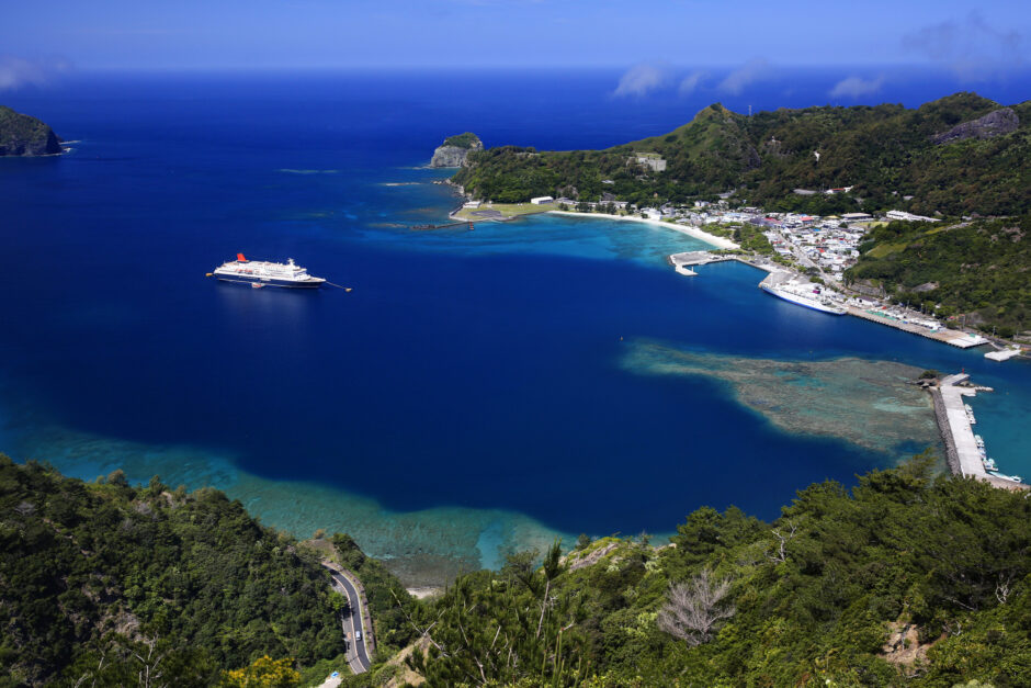 オプショナルツアー参加が一般的ですが、上陸地点となる二見港周辺は「大村」と呼ばれる島の中心地で、飲食店や土産物店、宿泊施設が密集しており、徒歩だけでも十分に島の雰囲気を感じられます。島の奥深くにある展望台やビーチを目指すなら、レンタルバイクやレンタカーが必須。島内には急坂が多いため、50ccの原付バイクが最も機動力のある足として人気です。村営バスも運行されていますが、本数が限られているため、自由度の高い移動手段を確保するのが島を満喫するコツです。