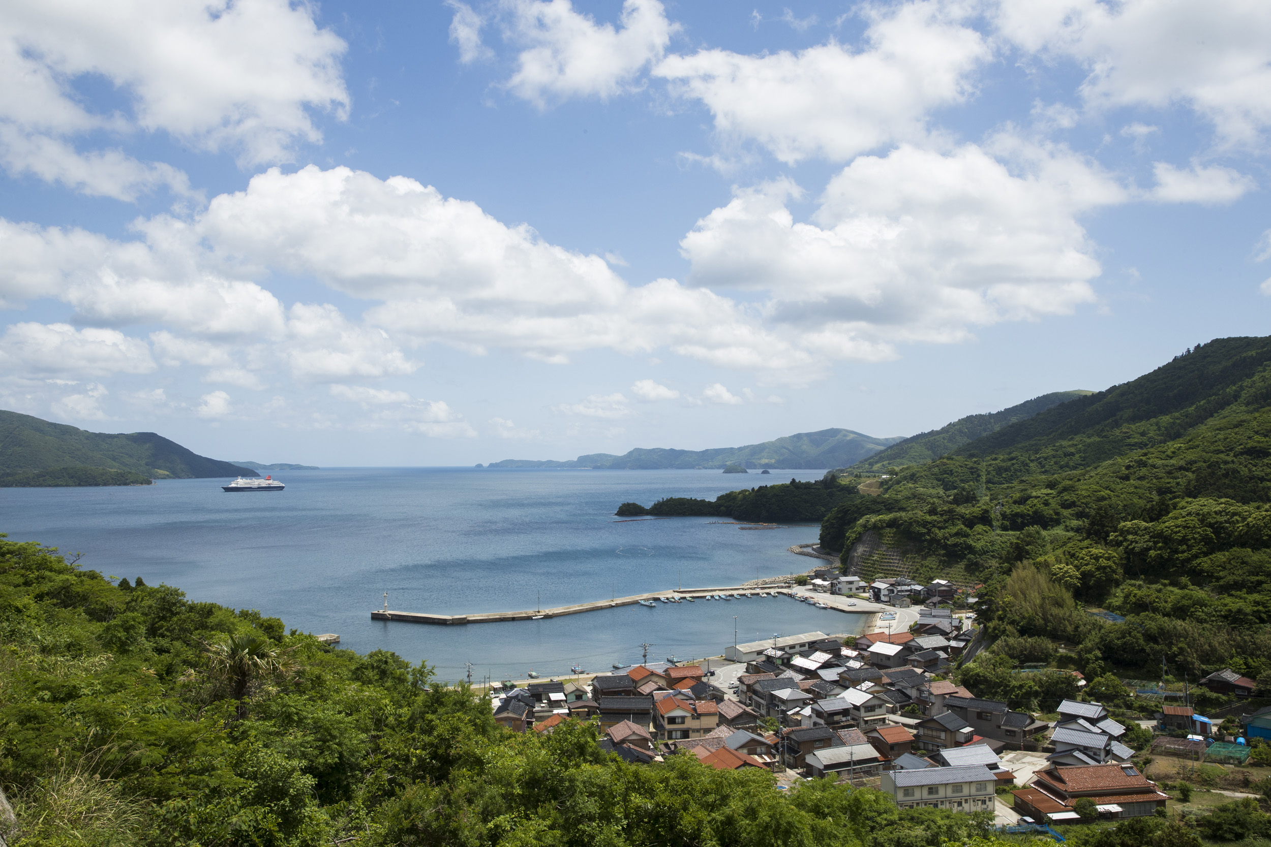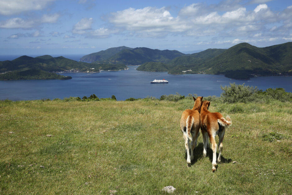 隠岐へのアプローチは、地球の造形美に圧倒される時間から始まります。船のデッキからは、波の侵食が生んだローソク島や、緑豊かな島々のシルエットが次々と現れ、まるで別世界へ迷い込んだかのような神秘的な光景に包まれます。着岸が近づくと、岸壁では地元の方々による力強い隠岐しげさ節の踊りや、温かな島言葉での歓迎があり、海に隔てられた島ならではの濃密なホスピタリティが、旅人の心を一瞬で解きほぐします。