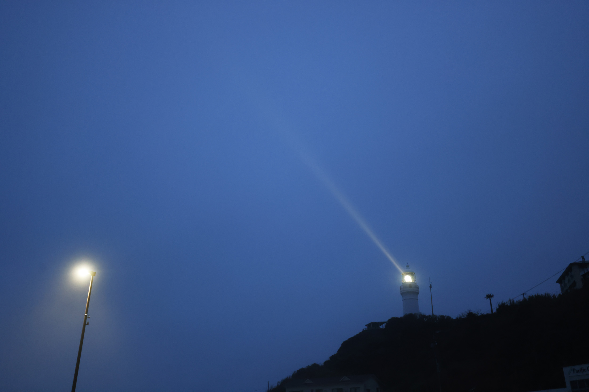 静岡の尖端、御前崎ですね。ここは『遠州の空っ風』で有名ですから、入港時の風向チェックは欠かせません。でも、この吹き抜ける風が本当に気持ちいい!上陸したら、あの真っ白な御前崎灯台までジョギングして、水平線の向こう側まで見渡してくるつもりです。あの灯台の光を見るとホッとしますからね。